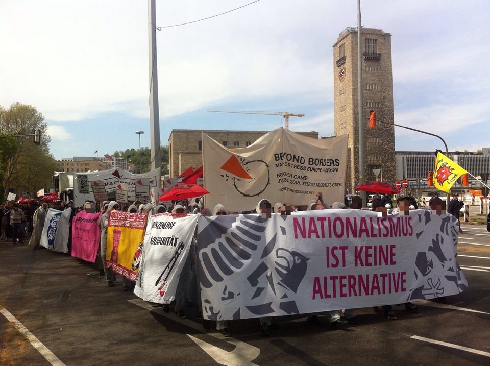 The right-wing party „Alternative für Deutschland /AfD“ ( English: Alternative for Germany ) is the most successful organized manifestation of the connection between classism and nationalism. It is a product of the reintroduction of German nationalism during the Euro-crisis, which made narrow-minded nationalism socially acceptable again. When the AfD recognized that anti-Euro(pean) propaganda alone wouldn’t be enough to win elections last summer, it ceased its demands about European politics and aligned more with the centre-right CDU (Christian Democratic Union, which is the governing party Chancellor Angela Merkel belongs to). The public swing to the right, which took place during the migration debate last summer, allowed the AfD to readjust their focus on asylum policy, without directly being labeled as radical right-wing. Despite the fact that the previously so-called ‘conservative-liberal’ wing has left the party when it split last year, it managed to keep parts of its bourgeois image while, at the same time, gaining popularity in the right-conservative and radical right-wing faction. Unfortunately, institutionalisation gets more likely with increasing successes in elections; this again could lead to a more widespread reception of their positions. Thereby, an interrelation clearly exists between the party and the seemingly unpolitical – in fact nationalist – environment that is hegemonic in parts of Germany. If we want to effectively push back this nationalist coalition, we have to become active on all levels, and also support the initiatives in more rural areas opposing the nationalist hegemony, like we did on the first of May in Plauen (Saxony). But that alone won’t be enough: by discrediting the AfD’s positions both substantially and practically, we want to prevent the institutional stabilisation of bourgeois racism in general; thus, the coming elections in several federal countries as well as the elections for the Bundestag (German parliament) in 2017 are of great importance. Because the AfD wins votes beyond the usual radical right-wing faction due to their bourgeois image, it is vulnerable at exactly this point, especially in Western Germany. It is only possible to attack the AfD in public for something that is already normal in the rest of society: reducing fleeing and migration to an economic calculation, in which Germans should come first. At the same time, by discrediting their position, we can also sabotage established parties. They hold the same strategies, trying to poach voters from the AfD by adapting some of their positions and thus legitimising them. Nevertheless, the attack on the AfD as the current organisational spine of the nationalist movement is not enough: beyond that, we also have to attack the players on the neoliberal political centre-ground and especially the state’s deportation regime.