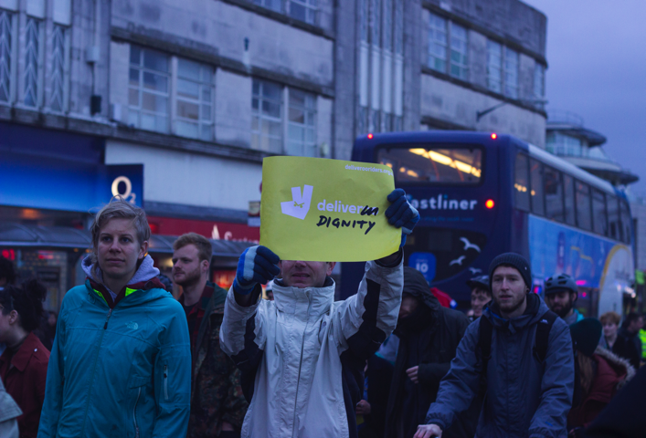 On the 1st May, a coalition of groups came together in Brighton to hold a ‘Precarious Mayday’ night demonstration to support and develop worker self-organisation in the city. The coalition calling the demonstration was made up of precarious academic staff from the university, supermarket workers and Deliveroo riders (organised in the IWGB base union) alongside students from a rent strike mobilising group, an occupied social centre and two political collectives (Plan C and SolFed).